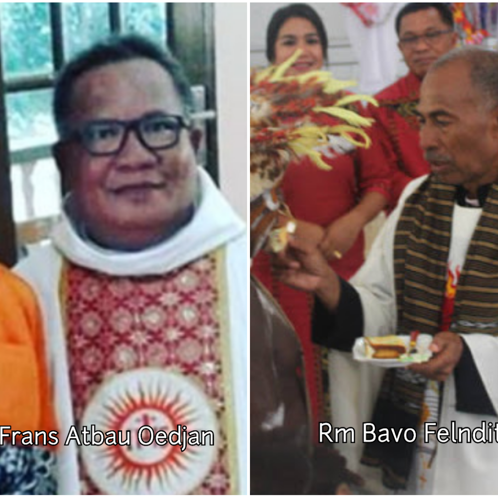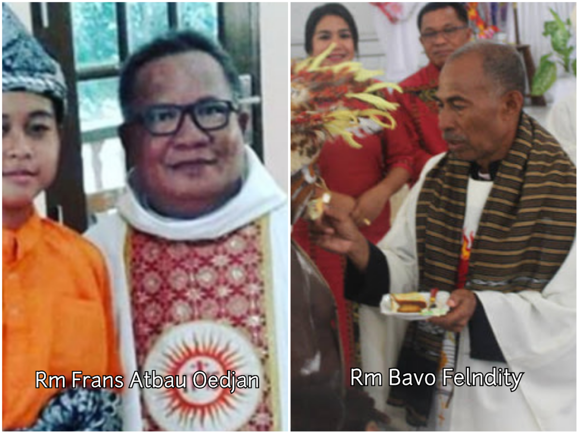 Alm. Rama Frans Atbau Oedjan, sebelum meninggal bertugas di Tanjung Pinang (kiri). Rama Bavo Felndity kini bertugas di pedalaman Agats-Asmat, Papua (kanan)