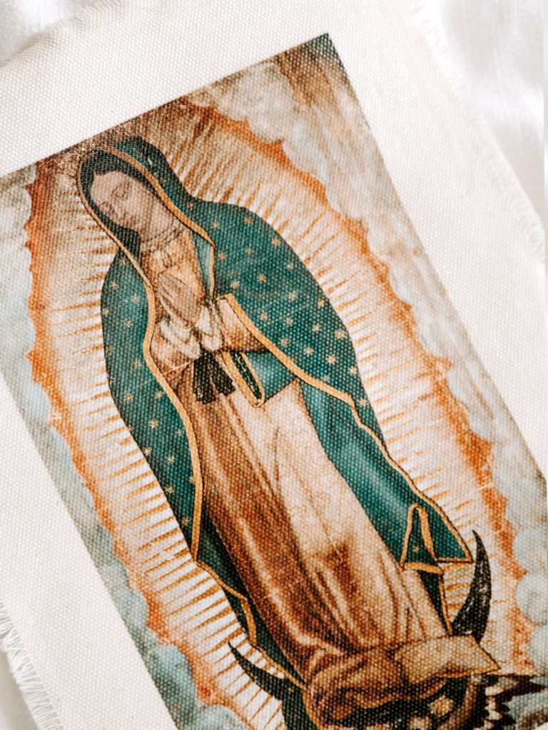 Pada ’tilma’ itu Bunda Maria digambarkan dengan bulan di kakinya, mantelnya ditutupi dengan bintang-bintang, dan seorang malaikat menopangnya. Ia sedang hamil, seperti yang ditunjukkan oleh ikat pinggang hitam di pinggangnya.